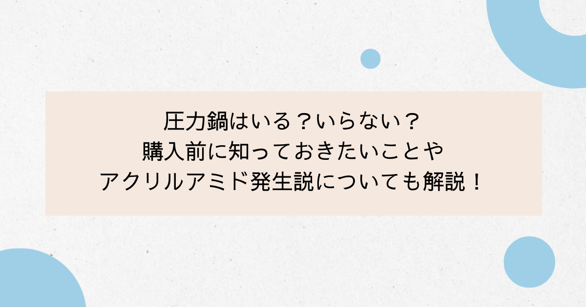 この記事では、圧力鍋がいる(あう)人、いらない(あわない)人や、アクリルアミド説について、また、代替となる調理法についても解説していきます。